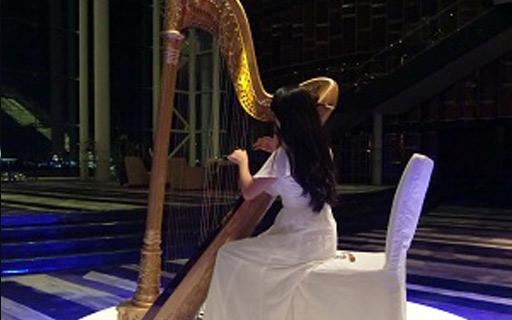 竖琴表演由于具有丰富的内涵和美丽的音质,竖琴成为交响乐队以及歌舞剧中特殊的色彩性乐器,主要担任的是和声伴奏和滑奏式的装饰句,每每奏出画龙点睛之笔,令听众难以忘怀。在室内乐中,竖琴也是重要的独奏乐器。独奏时能奏出柔和优美的抒情段或华彩乐段,极具感染力。